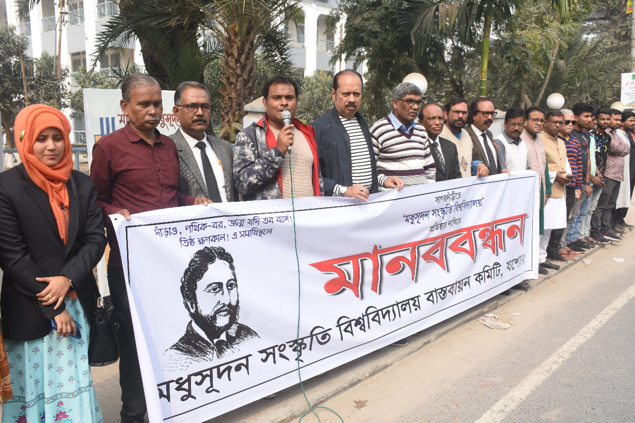 মধুসূদন সংস্কৃতি বিশ্ববিদ্যালয় প্রতিষ্ঠার দাবিতে যশোরে মানববন্ধন