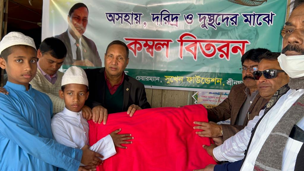 শ্রীনগরে সুখেন ফাউন্ডেশনের শীতার্তদের মাঝে কম্বল বিতরণ