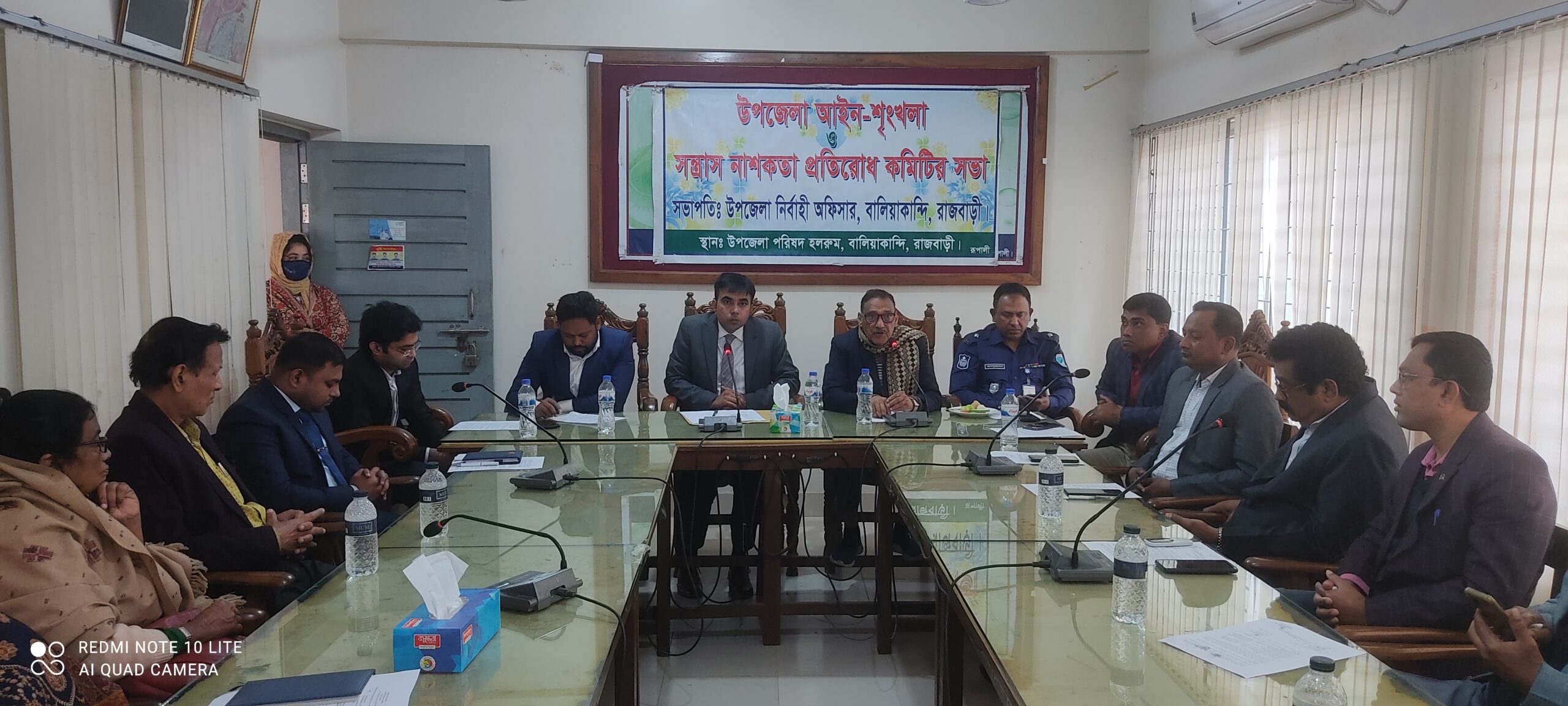 রাজবাড়ীর বালিয়াকান্দিতে উপজেলা আইন- শৃঙ্খলা  ও সন্ত্রাস প্রতিরোধ কমিটির সভা অনুষ্ঠিত হয়েছে। বৃহস্পতিবার (১৯ জানুয়ারি )  সকালে নির্বাহী কর্মকর্তার সভাকক্ষে এ সভা অনুষ্ঠিত হয়।