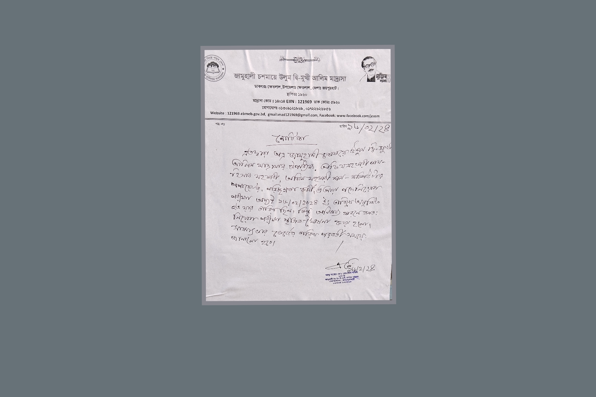 ক্ষেতলাল (জয়পুরহাট) প্রতিনিধি জয়পুরহাটের ক্ষেতলালে জামুহালী চশমায়ে  দ্বিমুখী আলিম মাদ্রাসায় নির্ধারিত সময়ের ১ ঘন্টা আগে শিক্ষক-কর্মচারীর পাঁচটি পদে নিয়োগ পরীক্ষা