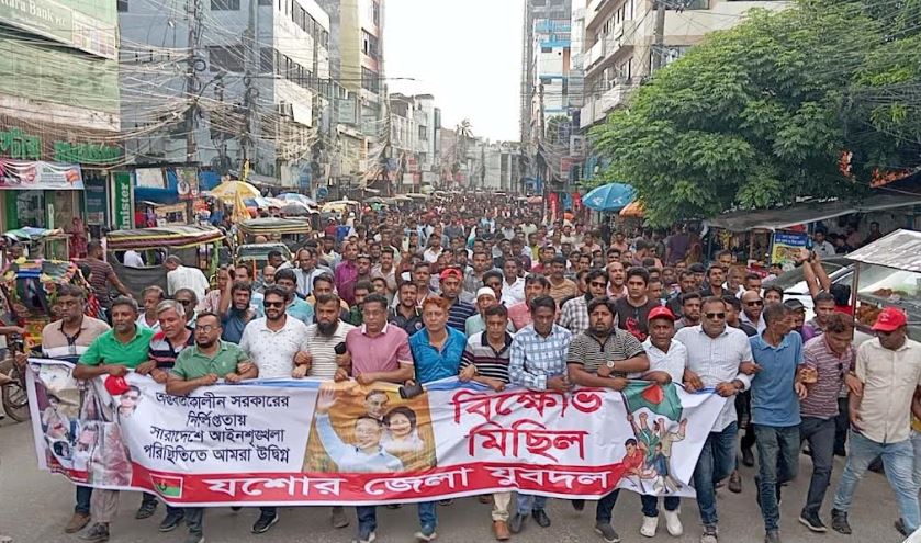যশোরে যুবদলের বিক্ষোভ সমাবেশ ও মিছিল
