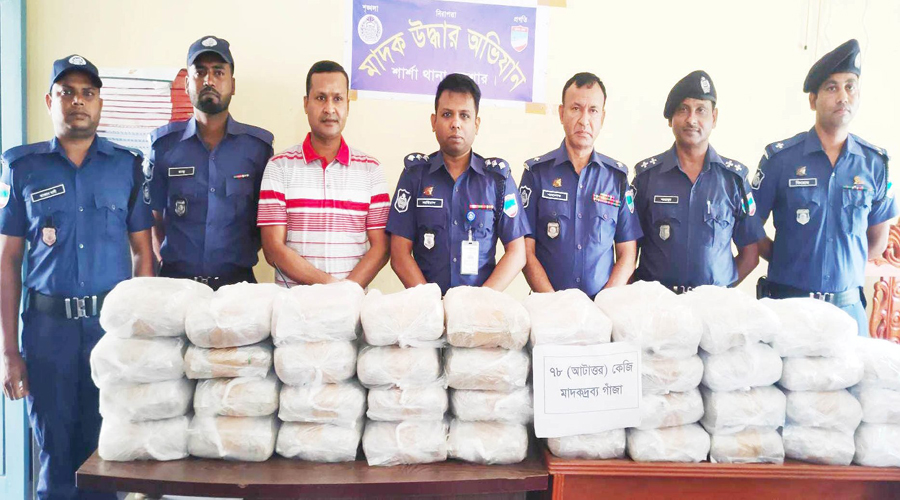 উপজেলা করেসপন্ডেন্ট (শার্শা)।। ভারত থেকে পাচার হয়ে আসা ৭৮ কেজি গাঁজা জব্দ করেছে যশোরের শার্শা থানার পুলিশ সদস্যরা। শনিবার (২৯