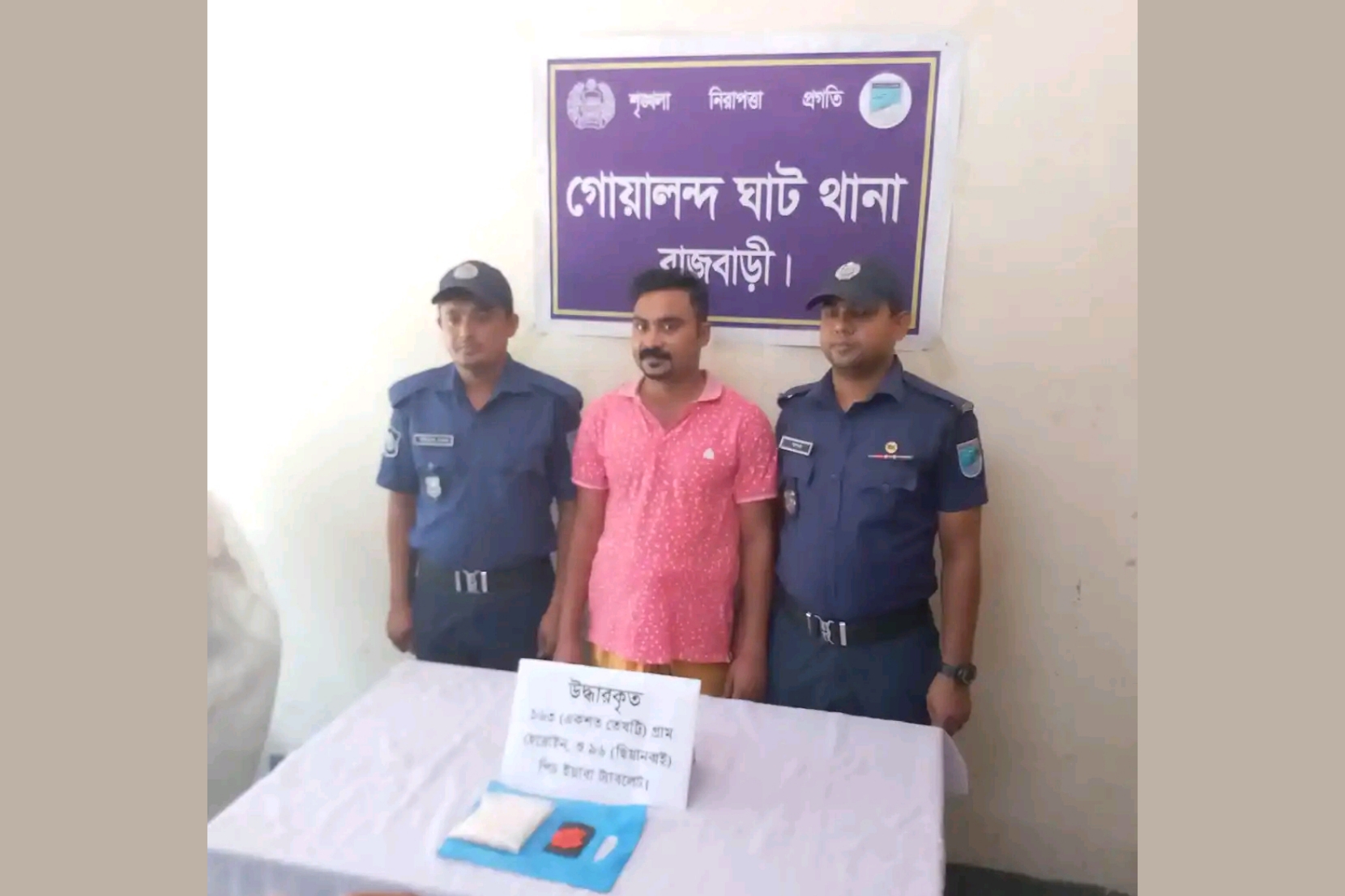 মেহেদী হাসান, রাজবাড়ী।। রাজবাড়ীর গোয়ালন্দে উপজেলা স্বেচ্ছাসেবক লীগের সহ সভাপতি শেখ শাহিন কে ১৬৩ গ্রাম হিরোইন ও ৯৬ ইয়াবাসহ