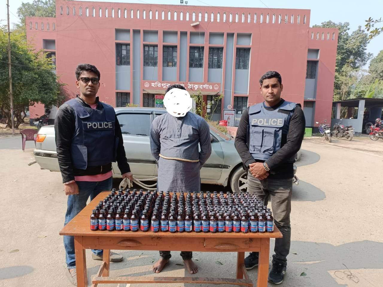 হরিপুরে ফেনসিডিল ও প্রাইভেটকারসহ আটক ১