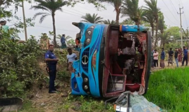 শার্শায় যাত্রীবাহী বাস উল্টে আহত ১০