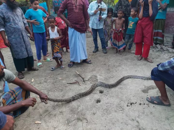 শরণখোলায় মাছের ঘের থেকে ৮ ফুট লম্বা অজগর উদ্ধার